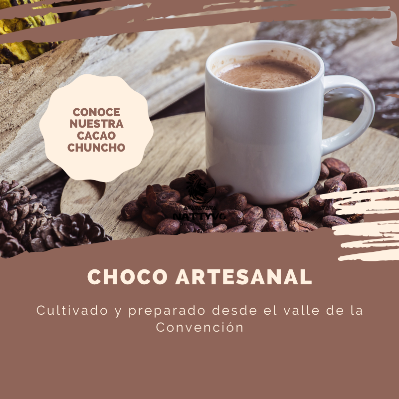 Descubra el sabor ancestral y la pureza de nuestro Choco Artesanal Nattyvo, elaborado con el exclusivo y altamente valorado Cacao Chuncho, una variedad nativa cultivada en el fértil Valle de La Convención, Cusco, Perú. Este cacao es reconocido mundialmente por su delicado aroma afrutado, baja acidez y un perfil de sabor superior, lo que lo posiciona como un verdadero cacao de calidad gourmet.
